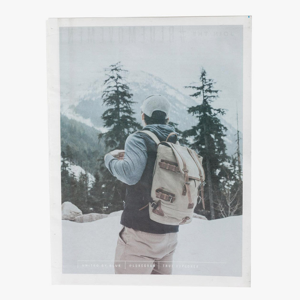 Produced quarterly by United By Blue, The Field Report is a two-page printed newsprint of exciting upcoming product arrivals, updates on our ocean and waterway cleanups, behind the scenes, and accompanying beautiful imagery.